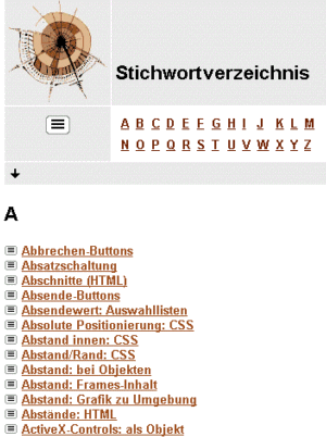 Die HTML-Umsetzung des klassischen alphabetischen Indexes, der aus Büchern bekannt ist.
